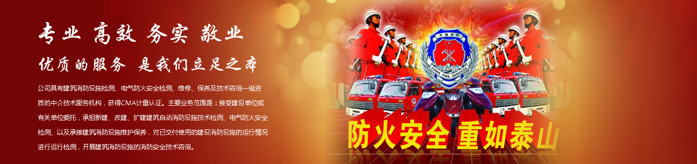 公司具有建筑消防設(shè)施檢測、電氣防火安全檢測、維修、保養(yǎng)及技術(shù)咨詢一級資質(zhì)的中介技術(shù)服務(wù)機(jī)構(gòu),獲得CMA計(jì)量認(rèn)證。主要業(yè)務(wù)范圍是:接受建設(shè)單位或有關(guān)單位委托,承擔(dān)新建、改建、擴(kuò)建建筑自動消防設(shè)施技術(shù)檢測、電氣防火安全檢測、以及承接建筑消防設(shè)施維護(hù)保養(yǎng),對已交付使用的建設(shè)消防設(shè)施的運(yùn)行情況進(jìn)行運(yùn)行檢測,開展建筑消防設(shè)施的消防安全技術(shù)咨詢。公司設(shè)辦公室、總工辦、財(cái)務(wù)部、檢測部、維保部等職能機(jī)構(gòu),擁有一